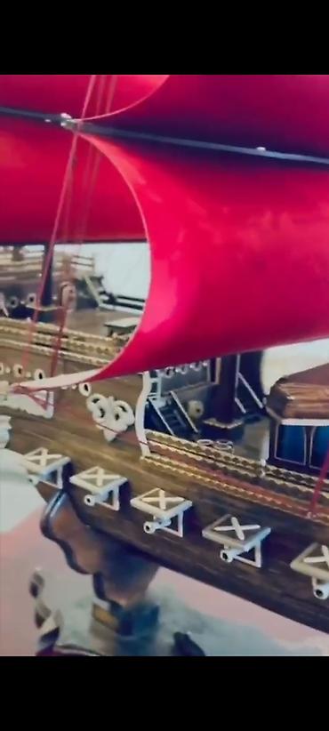 Размеры на фото ориентировочные: модель крупная, с высокой мачтой и несколькими рядами парусов.