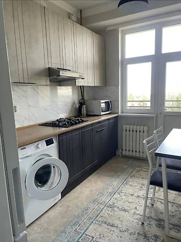 Просторная квартира в аренду, идеально подходящая для комфортного проживания. Включает уютную спальню с большой кроватью и прикроватной тумбочкой с лампой, современную ванную комнату с душем и стир...