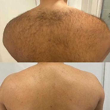 Мужской уход: депиляция и чистка лица - Депиляция воском/сахаром для мужчин: грудь, живот, подмышки, зона бикини и другие области по запросу. На фото — результат до/после обработки живота: удалени...