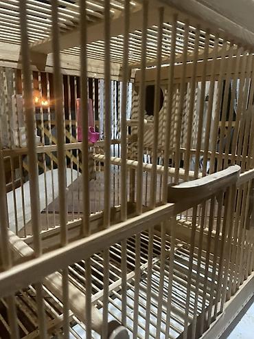 Подходит для мелких и средних декоративных птиц (канарейки, амадины, волнистые попугаи и т. п.). Натуральное дерево создает уютную среду, а выдвижной поддон упрощает уход. Компоновка с внешним домиком удобна для размножения и уединения птиц.