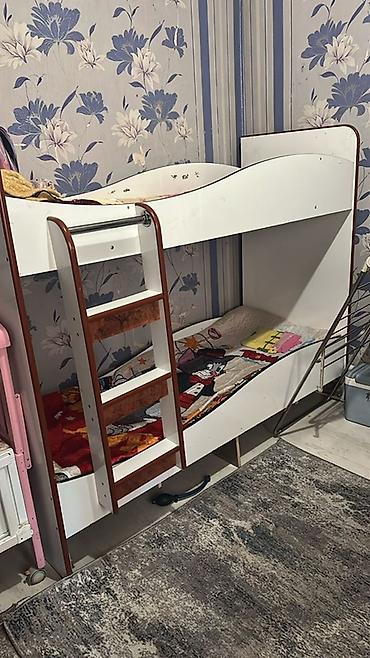 - Низ кровати приподнят на опорах; под нижним ярусом открытые ниши для хранения