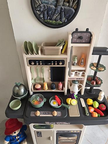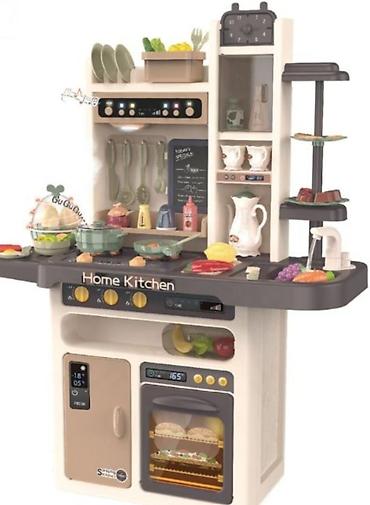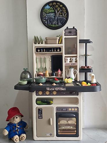 - Реалистичная кухонная станция с плитой, духовкой с «окном», холодильником/шкафчиком и панелью управления.