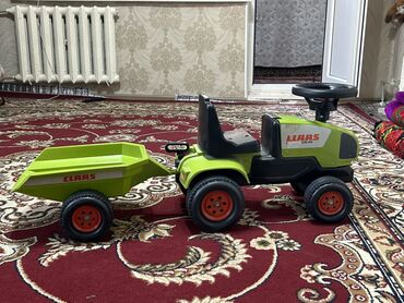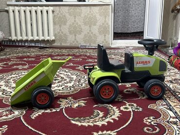 Отлично развивает координацию и воображение: можно возить игрушки, кубики и другие «грузы» в самосвальном прицепе.