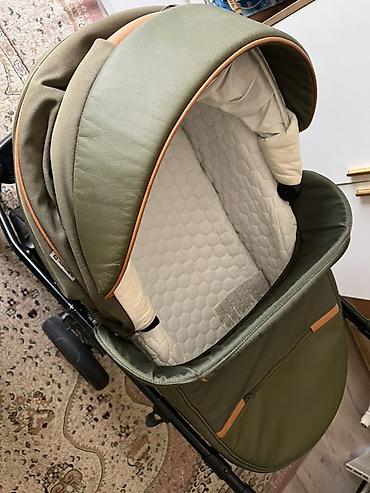 Детская коляска-трансформер 3 в 1 в оливково-бежевом цвете. Коляска аккуратная, чистая, использовалась очень мало. Набор включает: • Люлька — просторная, с качественным капюшоном, отлично подходи...Вход•Регистрация