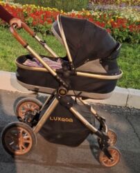 - Дизайн: минималистичный, логотип LUXMOM на раме и корзине