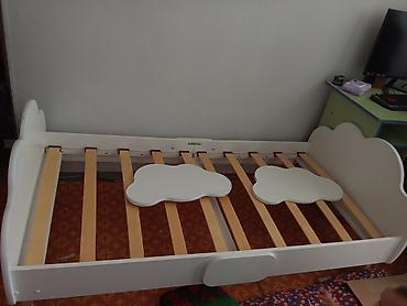 Детская кровать белого цвета с фигурными спинками в форме облаков. Кровать оснащена деревянными ламелями, обеспечивающими хорошую вентиляцию матраса и комфортный сон. Дизайн кровати универсален, подходит для оформления детской комнаты в светлых тонах, создавая уютную и сказочную атмосферу. Идеально для отдыха и сна Также имеются 2 бортика в форме облака . Покупали для дочери. Оказалась ещё маленькая для такой кровати . Состояние идеальное