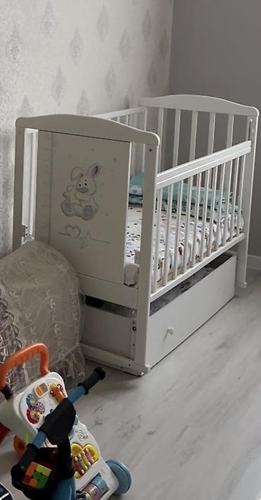 - Компактные габариты под стандартный матрас для кроваток 120×60 см (ориентир по виду матраса на фото).