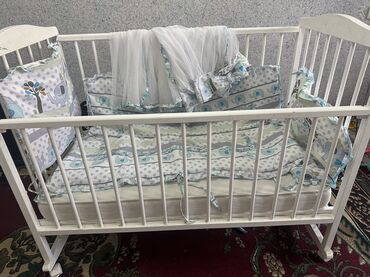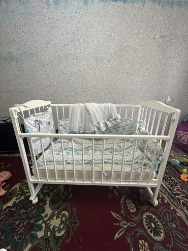 Детская кроватка с комплектом текстиля - Классическая деревянная