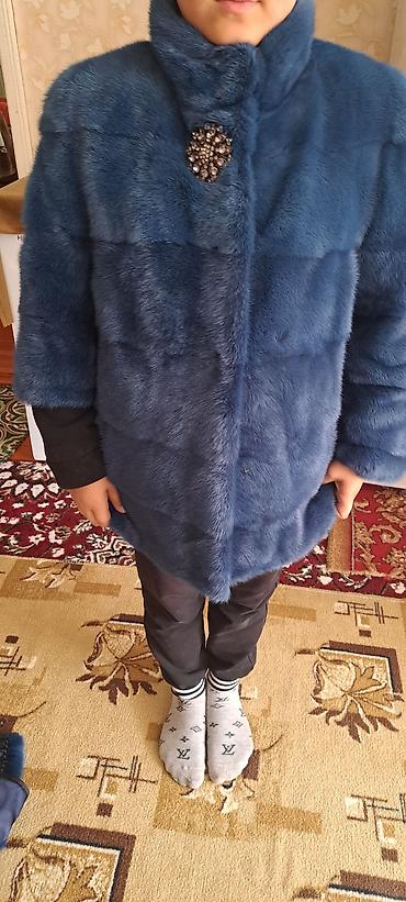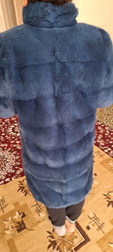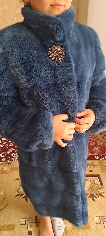 Шуба из меха норки, насыщенный сине-голубой оттенок.