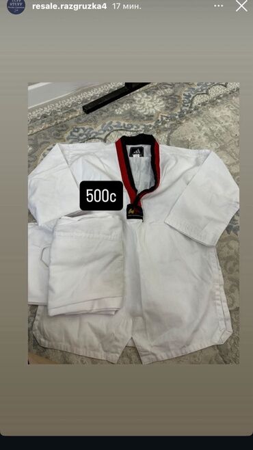 - Комплект: куртка и штаны белые, ворот красно‑черный