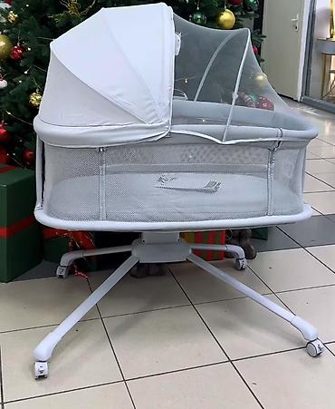 3) Колыбель-люлька на стойке с колесиками, белая/серая