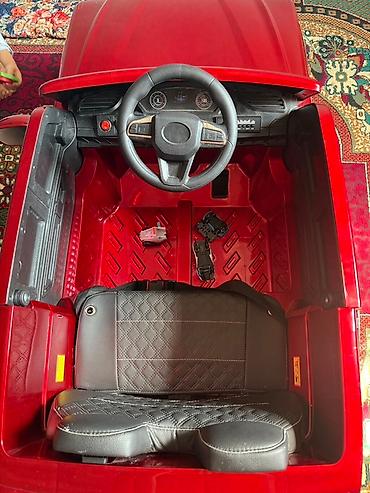 - Управление: педаль газа и руль в салоне; в комплекте пульт ДУ для родительского контроля (на фото)