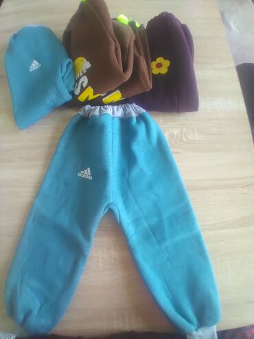 - Брюки флисовые бирюзовые на резинке в поясе, манжеты по низу; небольшой логотип спереди.