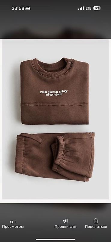 Детский костюм H&M: свитшот + брюки, цвет шоколадный.