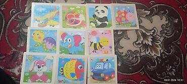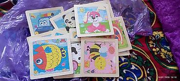 - 10 отдельных квадратных пазлов на деревянной основе.