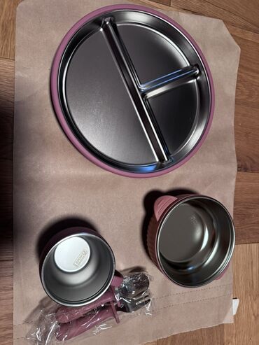 - Внутренние части посуды — сталь, внешние — пищевой силикон: безопасно для детей, не впитывает запахи, легко мыть.