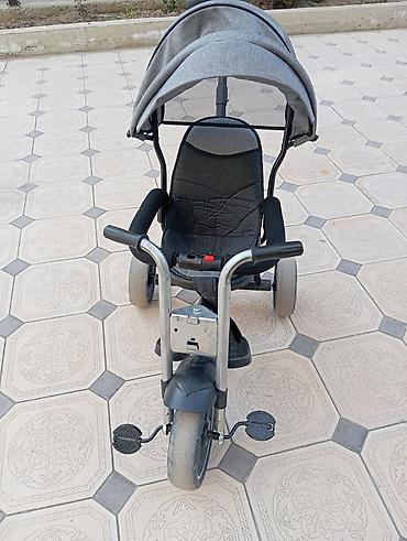 Подойдет для прогулок по городу и парку: можно катить родителю или ребенку крутить педали самостоятельно. Цвета: фиолетовый (коляска Kari Kids) и серый (велоколяска). На одном из изображений указан текст «САТЫЛАТ ». Телефонные номера не размещаем.