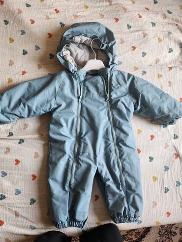 Детский зимний комбинезон Aimico в голубом цвете, предназначенный для малышей.размер 6мес.подойдет с 4 до 9ти мес. практически новый.Модель оснащена двумя длинными молниями по всей длине, что обеспечивает удобство при одевании и раздевании ребенка. Капюшон с мягкой подкладкой из серого флиса защищает от ветра и холода. Рукава и штанины имеют эластичные манжеты на резинке для лучшей фиксации и сохранения тепла. Комбинезон украшен небольшими светлыми точками. На этикетке указан размер 6M/68, что соответствует возрасту 6 месяцев и росту 68 см, делая его подходящим для младенцев.
