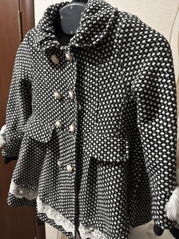Стильное, уютное пальто с акцентом на детали: кружево, фактурная ткань и нарядные пуговицы создают элегантный образ маленькой леди.