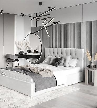 - Подбор и визуализация мягких изголовий, кроватей с объёмной стёжкой/каретной стяжкой, прикроватных тумб, текстиля и ковров.
