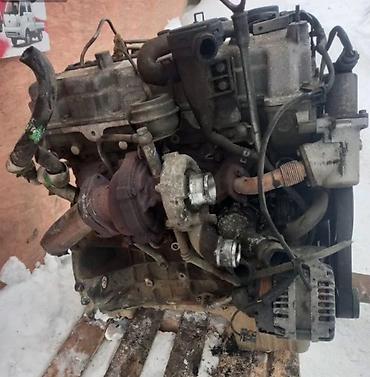 Бензин двигатель в сборе для коммерческого авто. Рядный 4‑цилиндровый, механический ТНВД, турбонаддув. На фото видны: генератор, стартер (отдельно), компрессор/насос навесного, масляный фильтр, впу...