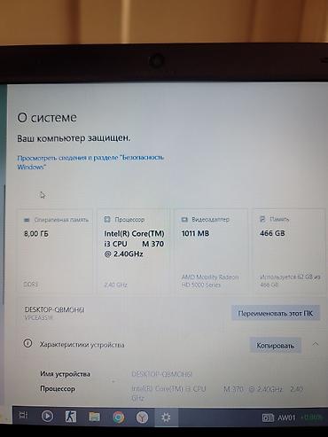 - Процессор Intel Core i3 M 370, 2.40 ГГц.