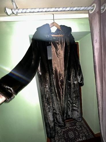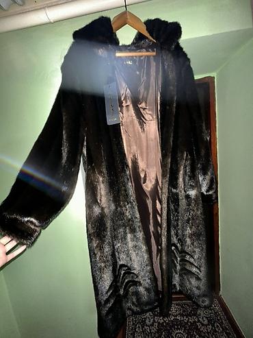 Длинная женская шуба с капюшоном из темного меха. - Бренд: указана