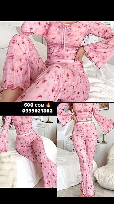 Домашние костюмы/пижамы Вариант 1: розовый комплект с цветочным
