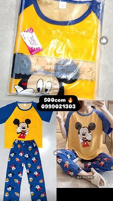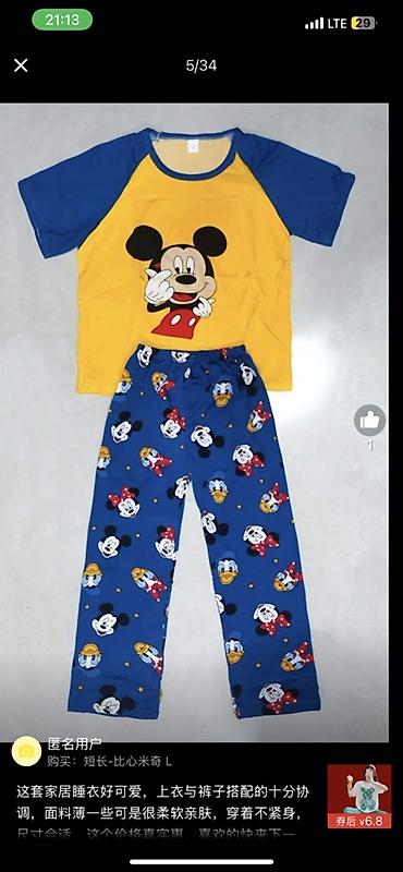 - Брюки на шнурке/резинке с полноценным принтом персонажей на синем фоне.