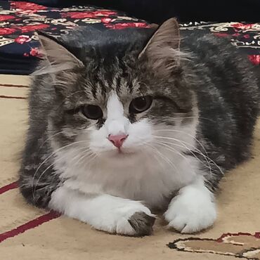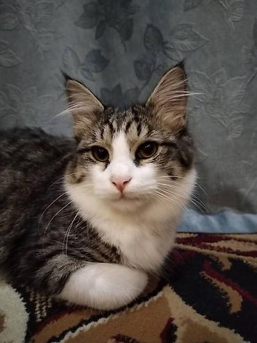 - Окрас: бело-тигровый (белая грудь и лапы, серо-коричневые полосы на спине и голове)