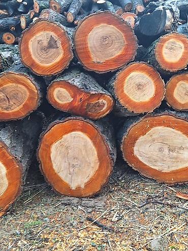 Дрова/брёвна из свежеспиленного дерева. - Крупные стволовые части, диаметр примерно 35–60 см, длина отрезков — около 1–2 м. - Порода лиственная (по структуре коры и древесины — тяжёлая, плотная; х...