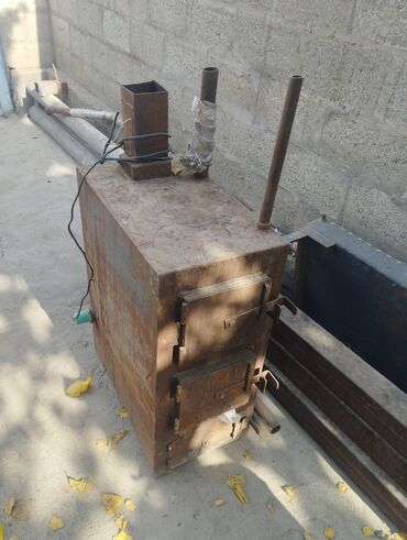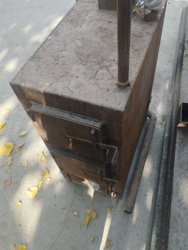 Печь-буржуйка коричневого цвета, выполненная из металла с
