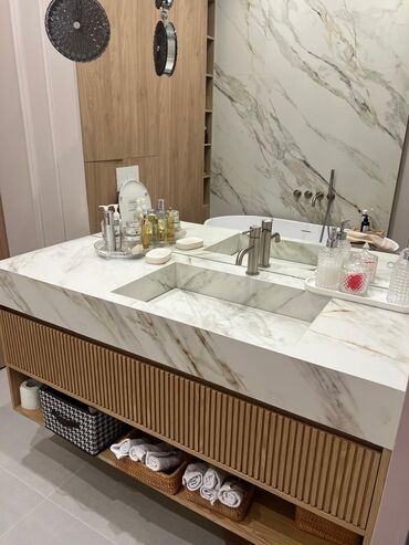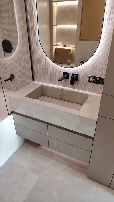 Раковины и столешницы из искусственного камня под заказ - Прямоугольные умывальники интегрированные в монолитную столешницу - Материал: искусственный камень (литой камень/акриловый композит), глад...