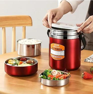 Термос пищевой трех секционный 2 литров. Материал: Пластик/Нержавеющая сталь. Секции (отсек): 3 (три) Объем: 1,7 л 1550 сом 2, л 1700 сом Без надписи (логотипа).