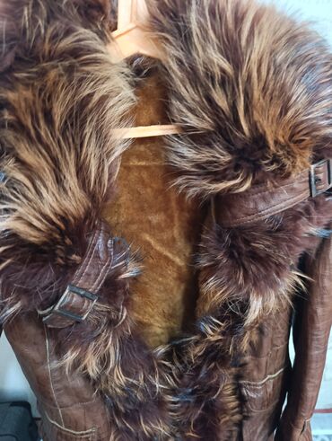 Тёплая, брутальная дублёнка с выразительным меховым воротником — отличный вариант для холодной погоды и стильных образов в винтажной эстетике. Размер ориентировочно L–XL (визуально по плечам и длине), удлинённая посадка.