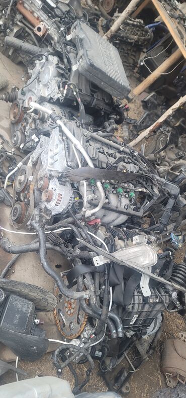 - Бензиновые и дизельные ДВС в сборе: видны моторы с навесным оборудованием, жгутами проводки, катушками зажигания, впускными коллекторами, генераторами, насосами и шкивами. На некоторых агрегатах сохранены датчики, катушки, дроссель, топливные рейки.