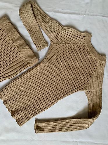 Женский комплект из двух предметов в насыщенном васильковом цвете. - Верх: свободная асимметричная туника с коротким рукавом. Мягкая драпировка на плечах и каскадные воланы создают выразительный с...