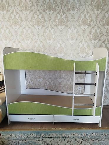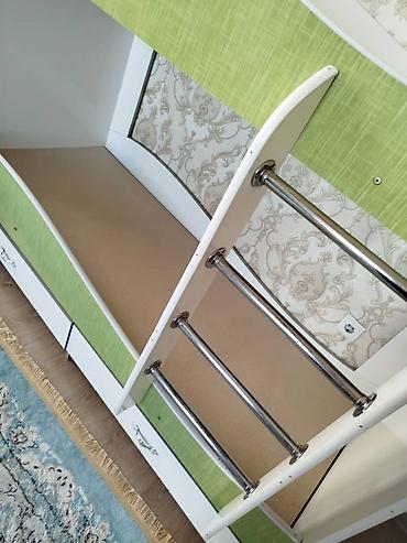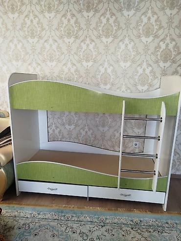 Двухъярусная детская кровать, Б/у, ЛДСП, цвет - Зеленый