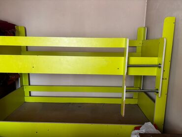 ЛДСПДвухъярусная кровать ярко‑салатового цвета.