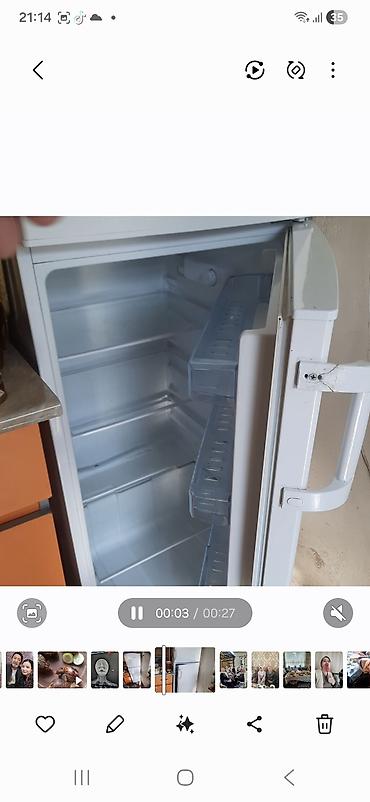 - Внутри холодильного отделения: несколько металлических полок, прозрачные полки/балконы на двери