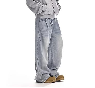 - Цвета: светлый варёный голубой и более тёмный серо‑синий деним (acid/stone wash).