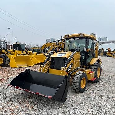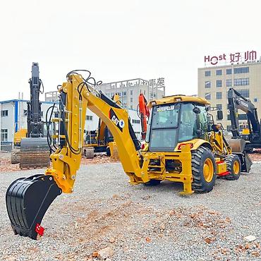 - Универсальная машина для земляных, строительных и коммунальных работ: фронтальный погрузчик спереди и обратная лопата сзади.