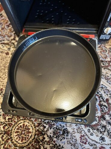 - Внутри перфорированный поддон; в комплект входят противень и круглой формы жаропрочная форма/сковорода.