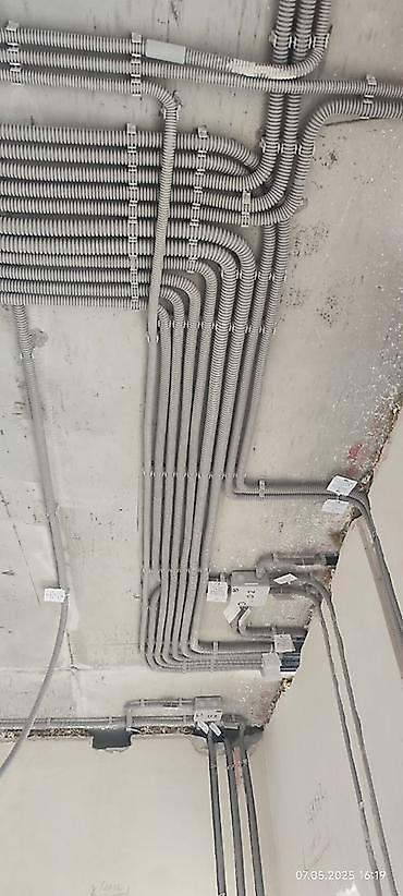 Профессиональный монтаж электропроводки под ключ в квартирах и домах. Что делаем: - Проектирование схемы электроснабжения с учетом нагрузки и зонирования. - Прокладка кабеля в гофре/коробах по пол...