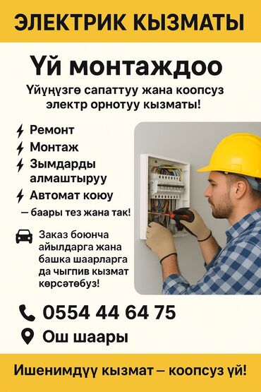 Электрик ош. разетка. ключатель. автомат. люстра. телевизор илебиз.электрический печка ремонт. Электро монтаж жашайбыз. установка генератор. Авр. тёплый Пол.установка аристон.