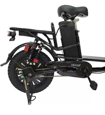 Электровелосипед-городской скутер компактного формата Основные особенности: - Привод на заднее колесо с мотор-колесом, питание от аккумулятора под платформой. - Передняя и задняя подвеска: пружинн...