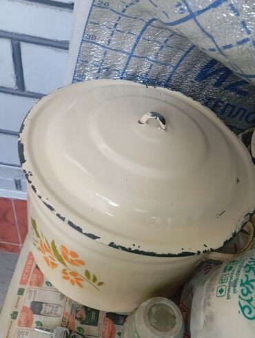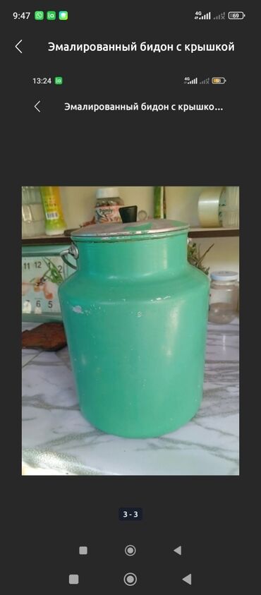 Эмалированный бидон с крышкой.