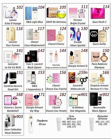Каталогдо көптөгөн популярдуу ароматтар бар: