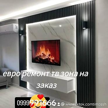 - Проектирование и монтаж ТВ‑зоны на заказ: панели с LED‑подсветкой, комбинированные фактуры (ламели, «мраморные» панели), скрытая проводка, подвесные тумбы.