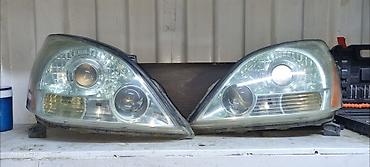 Предлагаются автомобильные фары в комплекте из двух штук. Каждая фара имеет прозрачные линзы, несколько отдельных световых элементов, включая линзованные блоки и секции с отражателями. В конструкции предусмотрен оранжевый сегмент для указателя поворота. Фары предназначены для установки на транспортное средство, обеспечивая освещение дороги и сигнальные функции.